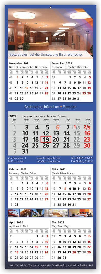 Die ideale Werbefläche für Ihr Unternehmen auf dem Kopfbereich und den 4 Zwischenbereichen unter den Kalendarien.